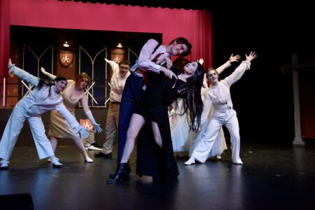 Gomez og Morticia Addams, (Nick Vigil og Josie Ringhofer danser en romantisk tango i The Addams Family Musical, og opptrer denne helgen og neste helg på New Ulm High School.