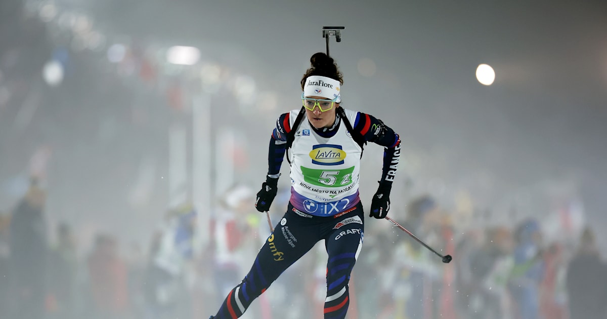 Franskvinnen vant henne første verdenskrone etter å ha oppnådd en eksepsjonell ytelse. På slutten av løpet og mens hun var i gang med den siste stafetten, fikk et problem med den siste ballen hennes direkte motstander til å forlate med litt mindre enn 4 sekunder i forveien. På ski klarte hun å ta igjen før hun tok et siste eksepsjonelt stående skudd.